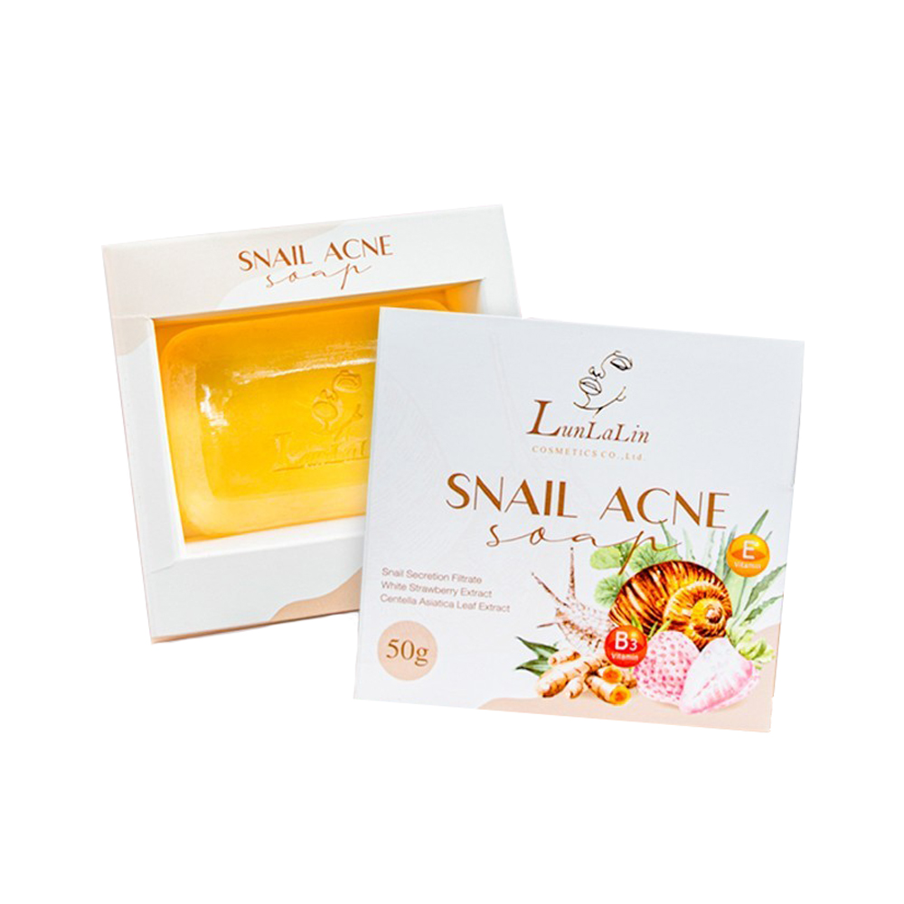 สบู่ทำความสะอาดผิวหน้า จากสารสกัดจากเมือกหอยทาก ขมิ้น ทีทรีออยล์ ว่านหางจระเข้ สตรอเบอร์รี่สีขาว และมีส่วนผสมของวิตามินบี3 วิตามินอี อาร์บูติน ฯ โดยสบู่ตัวนี้เค้าช่วยผลัดเซลล์ผิวเก่าเผยผิวใหม่ได้อย่างอ่อนโยน ช่วยลดการสะสมของแบคทีเรียต้นเหตุของการเกิดสิว ช่วยกระตุ้นการสร้างคอลลาเจนให้ผิวหน้าเรียบเนียน กระจ่างใส ช่วยลดเลือนริ้วรอยหมองคล้ำ ลดการอักเสบของผิว ช่วยให้ผิวพรรณมีความชุ่มชื้น ทำให้ผิวเรียบเนียนกระชับค่ะ
