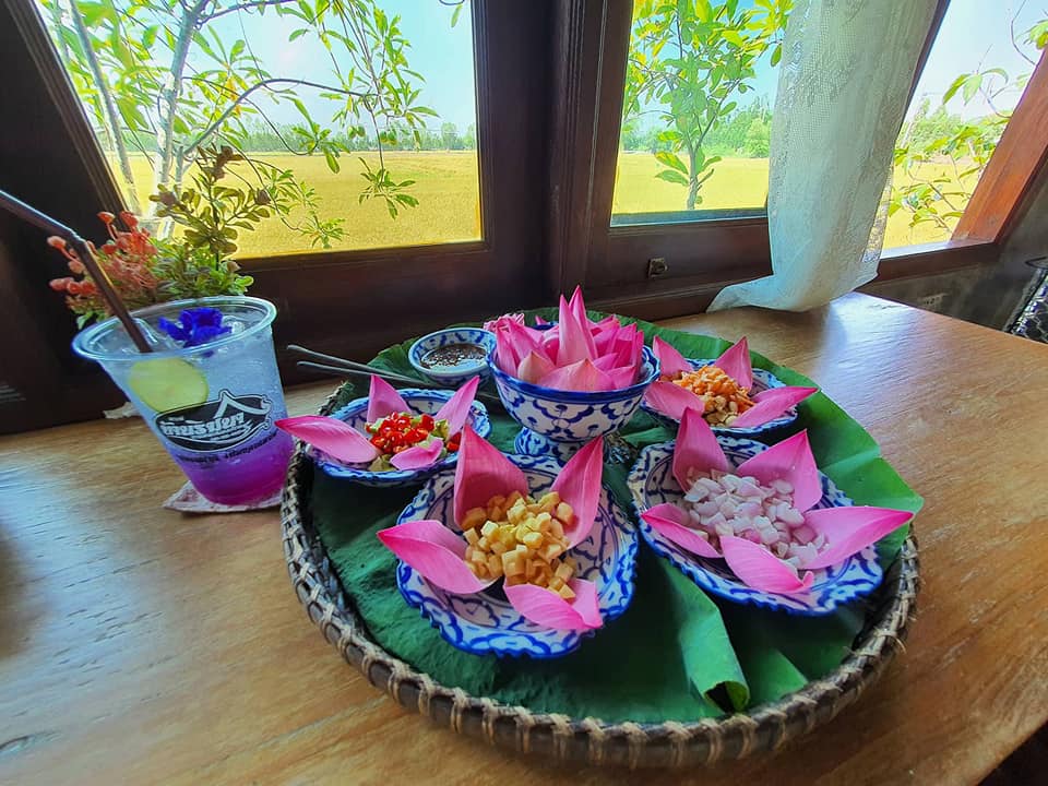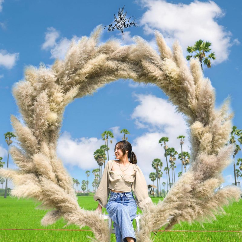 คาเฟ่วิวทุ่งนาที่มีต้นตาลประดับประดาเรียงรายอยู่ตามทุ่ง มีร่มสีชมพูและเก้าอี้ผ้าใบชายหาดแต่งแต้มบรรยากาศให้ดูน่ารักขึ้นไปอีก อาหารของทางร้านก็มีทั้งอาหารคาวอาหารหวาน รวมถึงเครื่องดื่มเย็น ๆ ชื่นใจคอยให้บริการ แต่ทั้งนี้สิ่งที่ขึ้นชื่อของคาเฟ่ที่นี่ก็คงต้องยกให้มุมถ่ายภาพ ที่มีให้เลือกมากมาย ไม่ว่าจะเป็นมุมไหนก็สวยไปหมด ซัมเมอร์นี้ชวนเพื่อน คนรู้ใจ หรือครอบครัวไปเที่ยวรับรองว่าอิ่มทั้งกายทั้งใจแน่นอนค่ะ