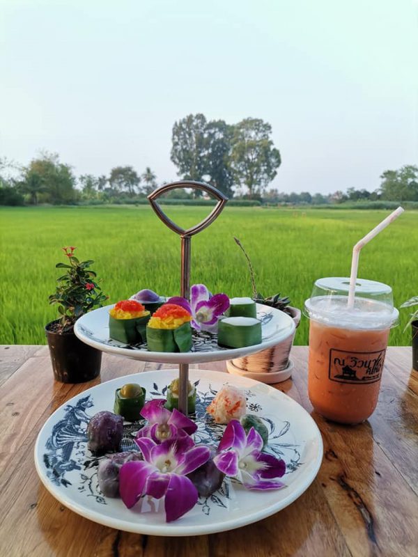 คาเฟ่ที่ตั้งอยู่ในจังหวัดอยุธยา มีพื้นที่กว้างขวางแบ่งเป็นโซนต่าง ๆ ให้ได้เลือกนั่งพักผ่อนชมวิวได้ตามใจชอบ รายล้อมไปด้วยวิวทุ่งนาสีเขียวสวยสุดปลายตา ตกแต่งด้วยไม้ไผ่สานดูกลมกลืนกับวิวธรรมชาติในสไตล์บ้านนาได้อย่างลงตัว นอกจากนี้ก็ยังมีสะพานไม้ที่ทอดยาวไปตามทุ่งนาให้เราได้เดินชมวิวได้อย่างทั่วถึง ชิงช้าน่านั่ งและหอคอยสูงที่เดินขึ้นไปถ่ายภาพได้เห็นวิวทั่วทั้งทุ่งนาได้อีกด้วย มีอาหารไทยทั้งคาวหวานที่รสชาติอร่อยถูกปากคนไทย รวมถึงเครื่องดื่มเย็น ๆ ชื่นใจให้เลือกอีกมากมาย วิวสวยอาหารอร่อยแบบนี้ต้องแวะไปสักครั้งแล้วล่ะ