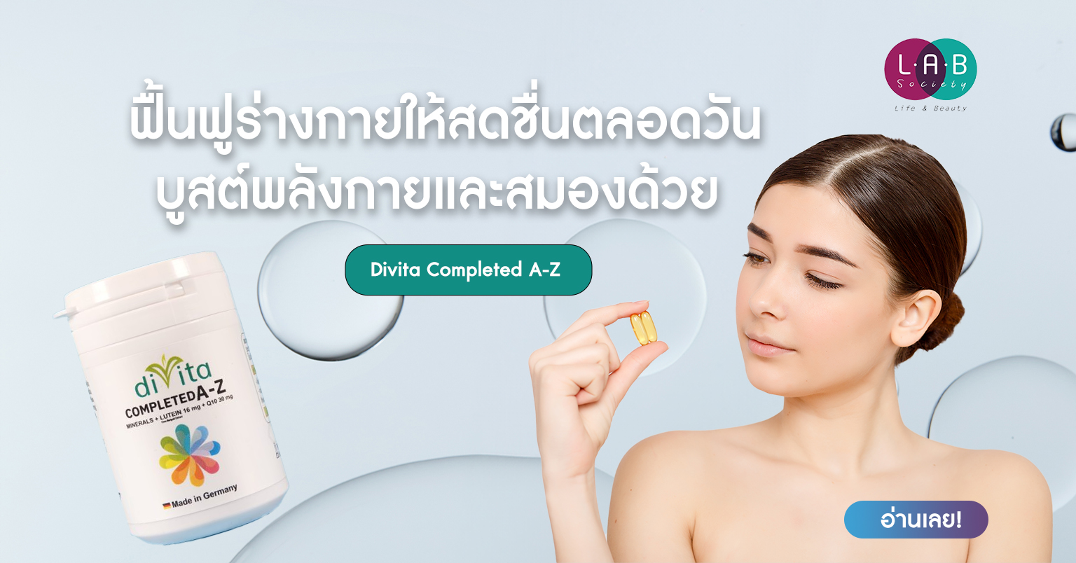 การเริ่มต้นวันใหม่ด้วยร่างกายที่พร้อมและสมองที่ปลอดโปร่ง คือจุดเริ่มต้นของคุณภาพชีวิตที่ดีค่ะ Divita Completed A-Z จึงเป็นทางเลือกที่ตอบโจทย์คนที่ต้องการการดูแลที่เรียบง่ายแต่ได้ผลลัพธ์ที่ครอบคลุม เพื่อให้คุณกลับมาฟิตและสดใสได้ในทุกๆ วันค่ะ