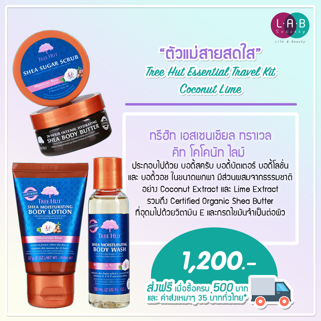 -Tree Hut Essential Travel Kit Moroccan Rose เซตบำรุงผิวประกอบไปด้วย Body Scrub,Body Butter,Body Lotion และ Body Wash มาในขนาดพกพา อุดมไปด้วยสารสกัดจากธรรมชาติที่ช่วยฟื้นฟูบำรุงผิว ให้กลับมาเนียนนุ่มชุ่มชื้นสุขภาพดี พร้อมหอมผ่อนคลายไปกับกลิ่นของ Moroccan Rose ปราศจากสารระคายเคืองผิว พกพาสะดวก ผิวสวยได้ทุกที่