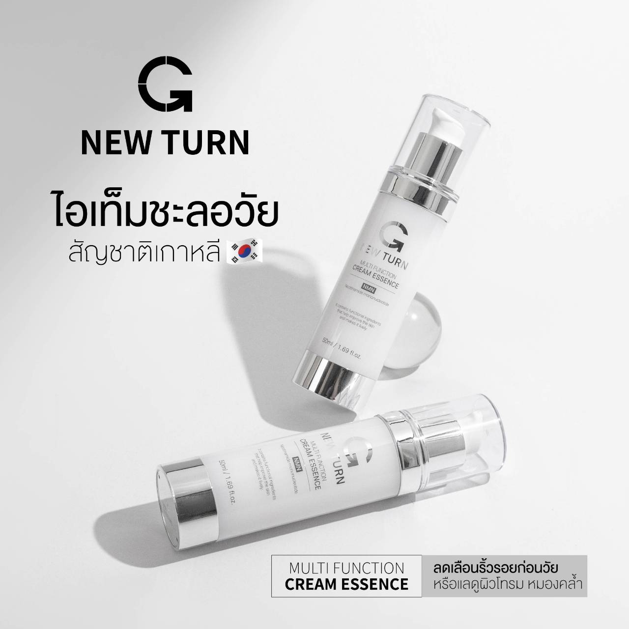 ปิดท้ายด้วยไอเทมแบบ All-in-One สำหรับสายขี้เกียจแต่รักผิว ตัวนี้เป็นครีมเอสเซนส์ที่มีส่วนผสมของ NMN สารสกัดสุดล้ำที่ช่วยฟื้นฟูระดับเซลล์ให้ดูอ่อนเยาว์ ผสานกับ Glutathione และ Hyaluronic Acid เนื้อสัมผัสบางเบาซึมไว เหมาะกับอากาศเมืองไทยมากค่ะ ตัวเดียวจบทั้งฟื้นฟูผิวหมองคล้ำ เพิ่มความแข็งแรง และลดริ้วรอยเล็กๆ เหมาะทั้งคุณผู้ชายและผู้ที่เริ่มต้นดูแลผิวแต่ไม่อยากใช้หลายขั้นตอนค่ะ
