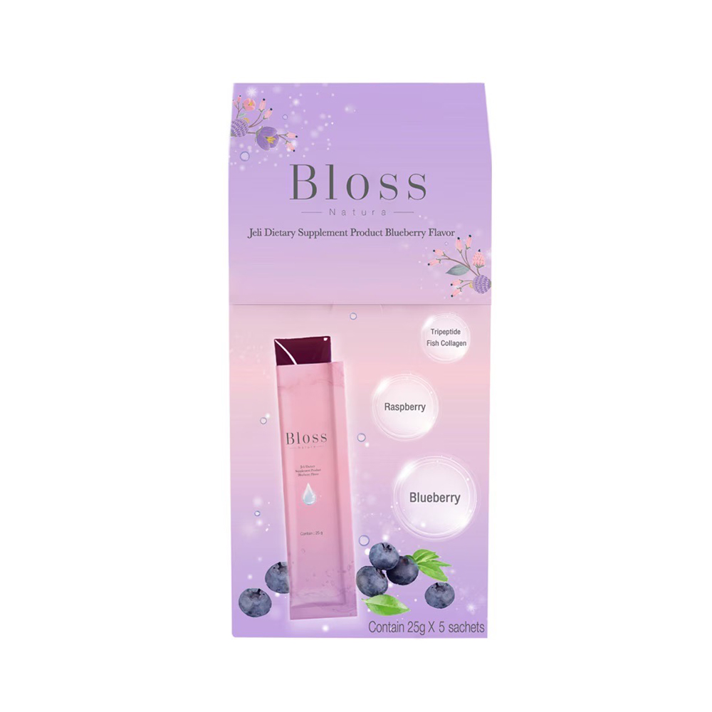 คอลลาเจนเจลลี่รสบลูเบอร์รี่ ช่วยให้ผิวอิ่มน้ำ ผิวอ่อนเยาว์ ริ้วรอยต่าง ๆ ดูจางลง ช่วยให้ผิวสมดุล ลดปัญหาผิวหน้าผลิตน้ำมันมากจนเกินไป ช่วยให้ผิวแข็งแรง ลดการสูญเสียน้ำของผิว