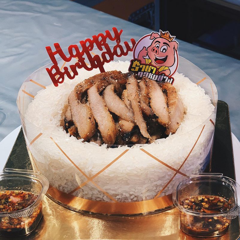 สร้างความเซอร์ไพรส์ให้กับคนที่รักด้วยเค้กคอหมูย่างจากร้านราชาคอหมูย่าง ร้านเค้กคอหมูย่างเจ้าแรกของประเทศไทย ถึงแม้ว่าจะนำคอหมูย่างมาทำเป็นเค้ก แต่ทางร้านก็พิถีพิถันในทุกขั้นตอนการทำไม่ต่างจากเป็นอาหารจานเดียวเลย ที่สำคัญคอหมูย่างร้านนี้เป็นสูตรข้าวคั่ว รับประกันความอร่อยเลยค่า