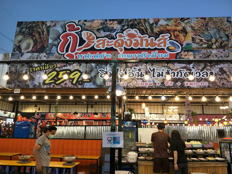 เป็นร้านหมูกระทะปิ้งย่างและซีฟู้ดส์แบบบุฟเฟต์ ใช้ของสดใหม่คุณภาพดี โดยเฉพาะเมนูซีฟู้ดส์ หอยนางรมตัวใหญ่ กุ้ง ปลาหมึก ปู คัดสรรไซส์แบบจัมโบ้มาให้ลูกค้าได้รับประทานกันอย่างจุใจ ทานคู่กับน้ำจิ้มรสเด็ดแซ่บถึงทรวง ทานได้ไม่จำกัดเวลา อิ่มคุ้มค่าในราคาหลักร้อย
