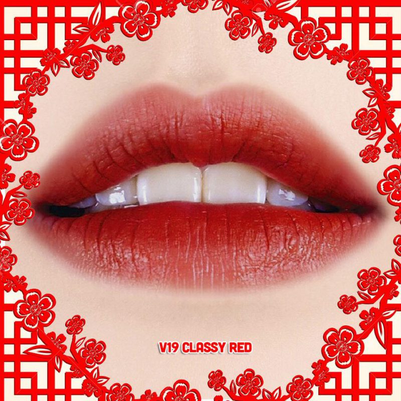 เริ่มกันที่ลิปสติกเนื้อกำมะหยี่จากแบรนด์ Chubugah สีแดงหรูหรา แต่ทาง่าย ซึ่งความพิเศษของลิปรุ่นนี้คือสามารถใช้ทาแก้ม ตกแต่งเปลือกตาได้ด้วย ปากฉ่ำน้ำ ติดทนนาน ซึ่งเฉดสีที่เหมาะกับตรุษจีนและวาเลนไทน์นี้คือ V12-Dangerous Girl สวยอันตรายต่อหัวใจ V13-Fire Burning ร้อนแดงดุจไฟแผดเผา และ V14-Autumn Maple สวยน่ามองเหมือนใบเมเปิ้ล