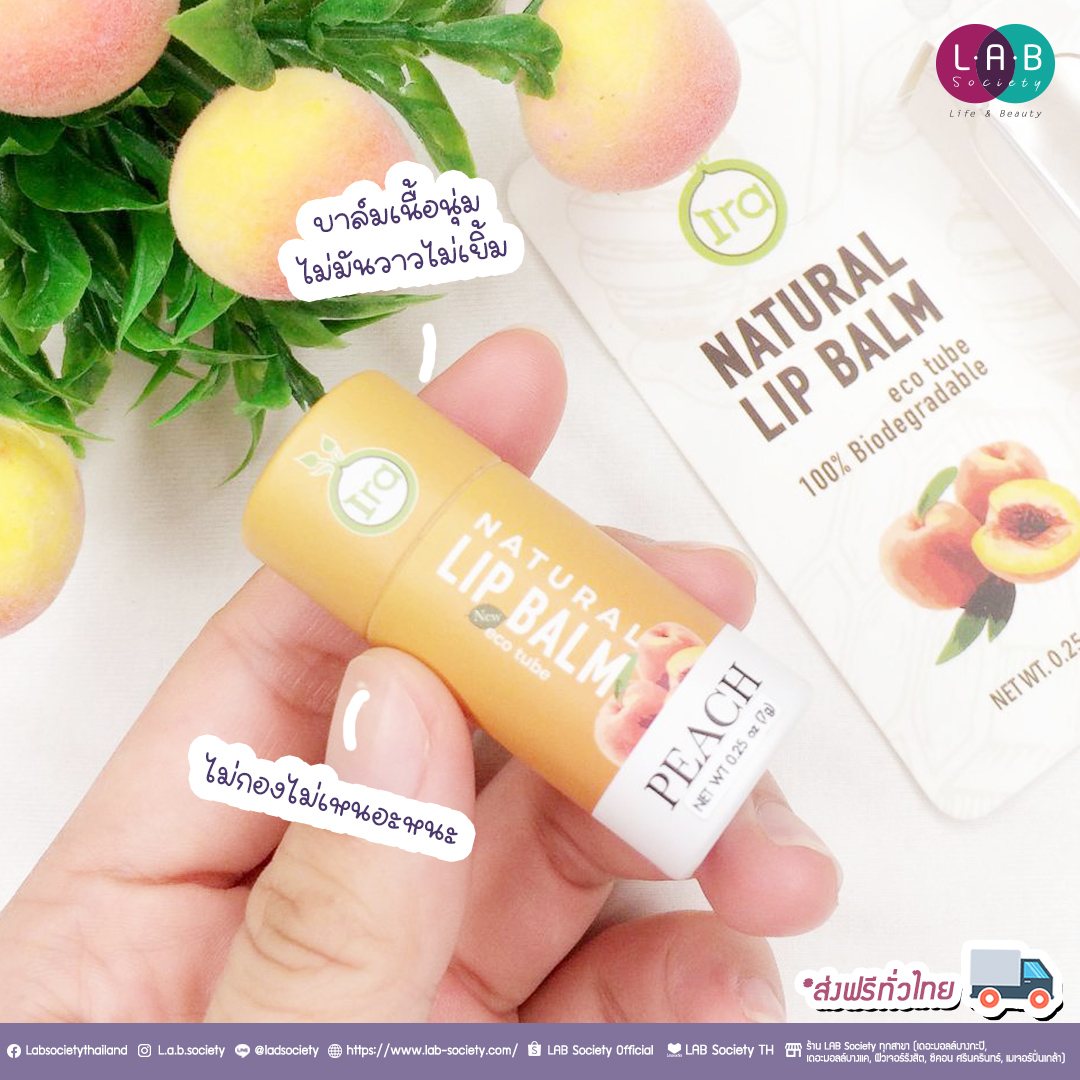 🌱Ira Eco Lip Balm Tube: Peach ลิปบาล์มเข้มข้น เนื้อไม่เหนอะหนะ ให้ความชุ่มชื้นได้ยาวนานด้วย Shea Butter และ