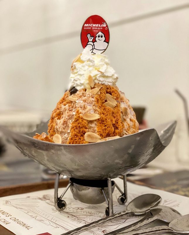 ร้านบิงซูที่มีกลิ่นอายของความเป็นไทยสูงมาก มีหลายสาขาในกรุงเทพ เป็นแบรนด์ของคนไทยที่ภูมิใจนำเสนอสู่สายตาชาวโลก การันตีด้วยรางวัลมิชลิน 3ปีซ้อน เมนูของทางร้านก็จะมีทั้งบิงซูหลากหลายรสชาติ แต่ถ้ามาร้านนี้แล้วก็อย่าลืมที่จะลองเมนูเด็ดที่ชื่อ ปังชาลูกไก่ทองรอยัล เป็นเมนูถ้วยใหญ่ถ้าอยากสั่งลองชวนเพื่อนไปทานดับร้อนได้ที่สาขาใกล้บ้านนะคะ