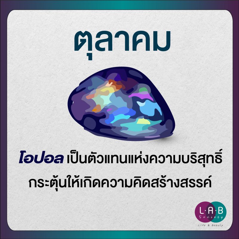 ชาวตุลย์เป็นคนเที่ยงธรรม รักสงบ ไม่เป็นคนก้าวร้าว เป็นคนสง่างาม มีเสน่ห์ จึงเหมาะกับ โอปอล (Opal) สัญลักษณ์แห่งความหวัง ความบริสุทธิ์ เป็นอัญมณีแห่งความรับรู้ทางจิตใจ จึงทำให้การรับรู้ต่อสิ่งรอบข้างสมบูรณ์ขึ้นผู้ใดได้ครอบครองโอปอล จะรู้เหตุล่วงหน้าว่าดีหรือร้ายอย่างไร และป้องกันภูติผีศาจ โดยเฉพาะโอปอลสีเข้ม หรือ แบล็กโอปอล และทัวร์มาลีนสีชมพู (Pink Tourmaline) คนโบราณเชื่อกันว่าทัวร์มาลีน จะนำโชคดีมาสู่เจ้าของ และยังสามารถรักษาโรคบางอย่างได้อีกด้วย