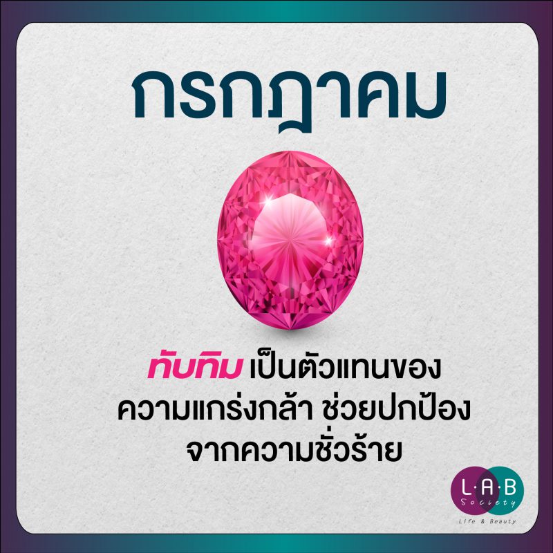 ทับทิม (Ruby) เป็นอัญมณีประจำราศีกรกฏมาจากภาษาละตินคำว่า “Ruber” แปลว่า สีแดง จัดเป็นราชาหรือผู้นำแห่งอัญมณี เป็นเครื่องประดับแห่งเกียรติยศ มีอำนาจประหลาดในตัว ทำให้ผู้สวมใส่ประสบแต่สิ่งน่าพึงพอใจ เชื่อกันว่า ผู้ใดได้ครอบครองทับทิมจะทำให้มีอำนาจ สมหวังในเรื่องความรัก และชีวิตคู่จะมั่นคงยืนยาว อีกทั้งยังรักษาม้ามและตับได้ สปิเนล(Spinel) ก็ถูกนำมาใช้แทนทับทิมได้เช่นกัน โดยเฉพาะสปิเนลสีแดง ซึ่งหากดูเผินๆแล้วจะมีความคล้ายคลึงกับทับทิมมาก จะต่างตรงที่สปิเนลมีความวาว ความแข็ง และน้ำหนักน้อยกว่า แต่ราคาก็ต่ำกว่าเช่นกัน