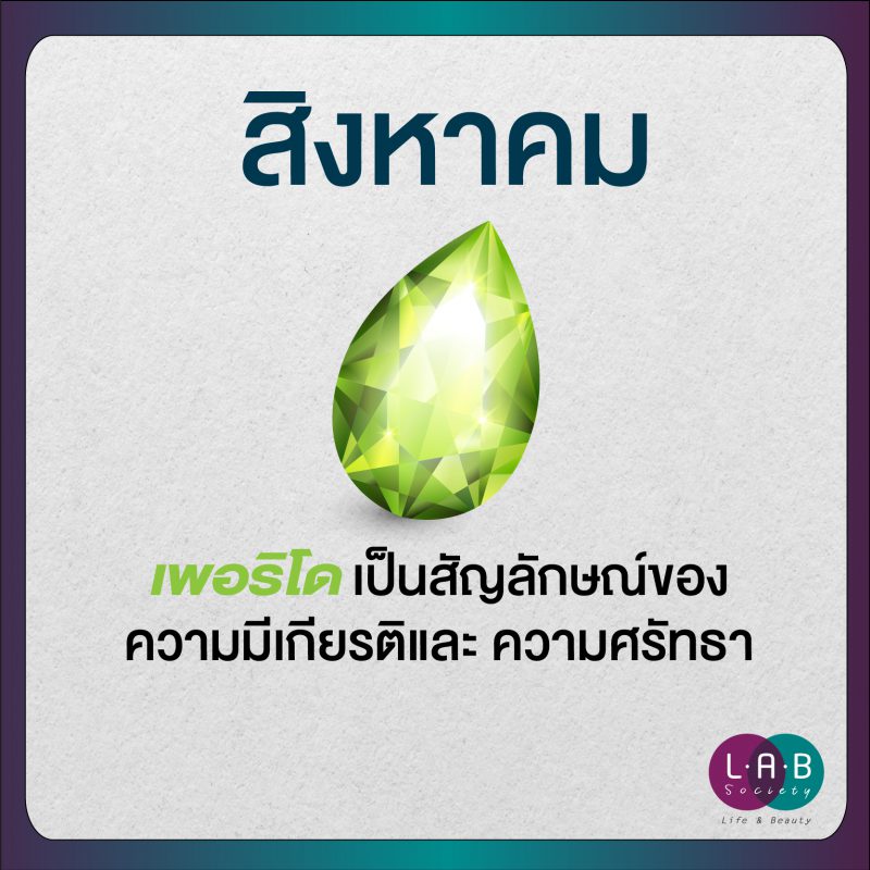 คนที่เกิดเดือนสิงหาคม เป็นคนที่มีลักษณะเฉพาะตัว เป็นผู้วางเป้าหมายชีวิตด้วยตัวเอง สง่า เอาการเอางาน ซื่อสัตย์กตัญญู กล้าหาญ เห็นอกเห็นใจผู้อื่น ทำหน้าที่ด้านการบริหารการปกครองได้ดี ไม่ย่อท้อต่ออุปสรรค Peridot มาจากภาษาฝรั่งเศส ดังนั้นที่ถูกจึงอ่านว่า “เพอริโดต์ เป็นอัญมณีประจำเดือนสิงหาคม เพริโดต์ถูกขุดพบครั้งแรกในเหมืองแห่งหนึ่งในสมัยอียิปต์โบราณ ชาวโรมันจะเรียกเพอริโดต์ ว่า “มรกตตอนกลางคืน(Evening emeraldมีคุณสมบัติในการขจัดความหดหู่ และความอิจฉา เหมาะที่จะนำมาใช้ในการสร้างเสริมพลังงานทางด้านจิตใจและตับ ทำให้จิตใจเข้มแข็งกล้าหาญ มีอำนาจทำให้ผู้สวมใส่มีอำนาจบารมียิ่งใหญ่