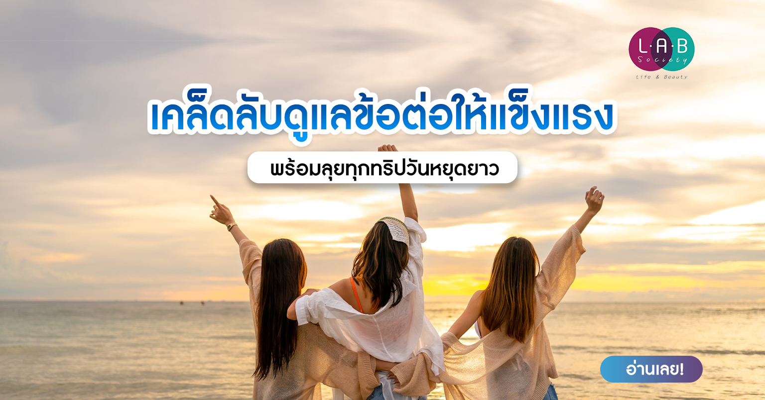 ในช่วงวันหยุดยาว หลายคนคงมีแพลนทริปท่องเที่ยวในใจ ไม่ว่าจะเป็นการเดินป่าขึ้นดอยชมวิวสวยๆ การเดินช้อปปิ้งมาราธอน การท่องเที่ยวต่างประเทศ แต่ปัญหาใหญ่ที่มักจะตามมาและขัดจังหวะความสนุกก็คืออาการปวดข้อ ตึงเข่า ที่ทำให้ลุกนั่งก็ลำบาก จะเดินต่อก็ไม่ไหว วันนี้ LAB Society มีเคล็ดลับดีๆ ในการดูแลข้อต่อให้ พร้อมลุยได้ทุกกิจกรรมมาฝากกันค่ะ