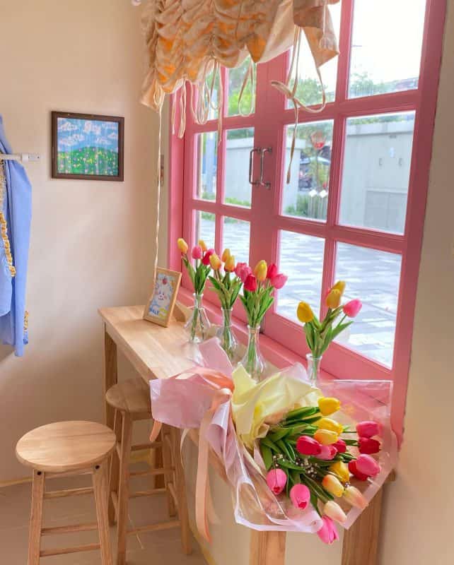 เป็นคาเฟ่ที่ตกแต่งด้วยสไตล์เกาหลีในรูปแบบโทนสีขาวบวกกับชมพูดูน่ารรักฟรุ้งฟริ้ง แถมที่นี่มักจะถูกเอารูปหรือป้ายโปรเจคของศิลปินเกาหลีมาจัดร้านอีกด้วย เรียกได้ว่าสายเกานี่ต้องห้ามพลานเลยทีเดียว มุมต่างๆก็จัดออกมาน่ารัก ส่วนเครื่องดื่มในร้านก็มีหลากหลายให้ได้เลือกทาน เรียกได้ว่าดีทั้งบรรยากาศทั้งอิ่มท้องเลยค่ะ
