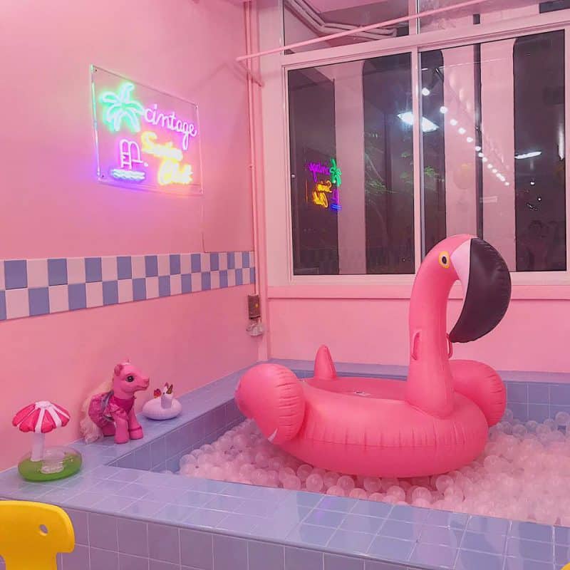 ร้านนี้ได้ฟิลร้านคาเฟ่นั่งชิวเกาหลีมากๆ ร้านนี้หาง่ายมากๆ เพราะอยู่ตรงข้ามกับร้านเรดซันสยามสแควร์ซอย 9 ใกล้กับศูนย์หนังสือจุฬา ร้านนี้มีจุดเด่นคือตกแต่งด้วยสีชมพูตั้งเเต่ป้ายร้าน พอเข้าไปด้านในกูถูกตกแต่งด้วยของน่ารักหลายหลายสีสันแต่เน้นไปที่สีชมพู และสีสดใส ดูแล้วรู้สึกมีเอเนจี้แน่นอน ในร้านมีเครื่องดื่มให้บริการหลากหลาย แถมยังมีมุมให้ถ่ายรูปมากมายได้ฟิลเกาหลีและไม่พอเท่านั้น ยังมีร้านขายเสื้อผ้าด้านในคาเฟ่อีกต่างหาก! เรียกว่าครบเลยทีเดียว