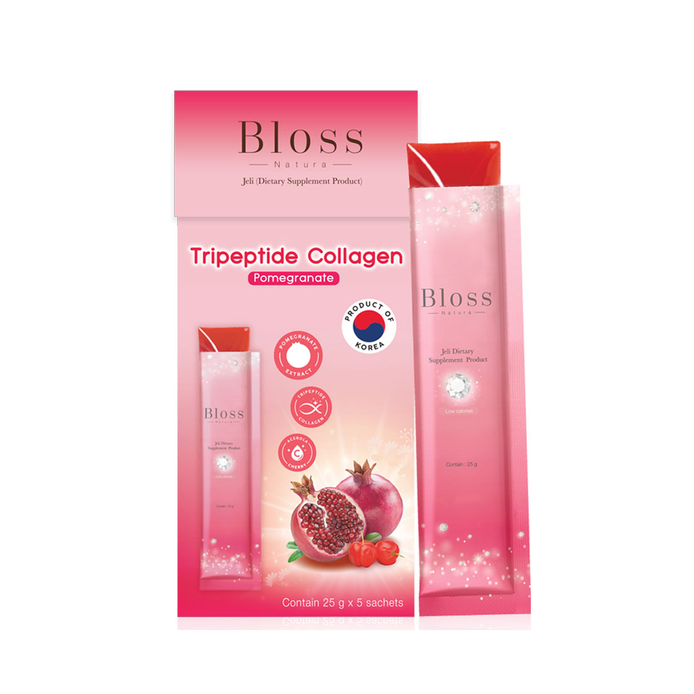 เจลลี่คอลลาเจน ผสานสารสกัดจากธรรมชาติอันทรงคุณค่าจากทับทิม, อะเซรอล่า, เชอร์รี่, มะเขือเทศ, เมล็ดองุ่น และคอลลาเจน ไตรเปปไทน์จากปลาทะเล ให้ผิวนุ่มลื่น เรียบเนียน น่าสัมผัส ผลัดผิวใหม่ ปรับสีผิวให้กระจ่างใส