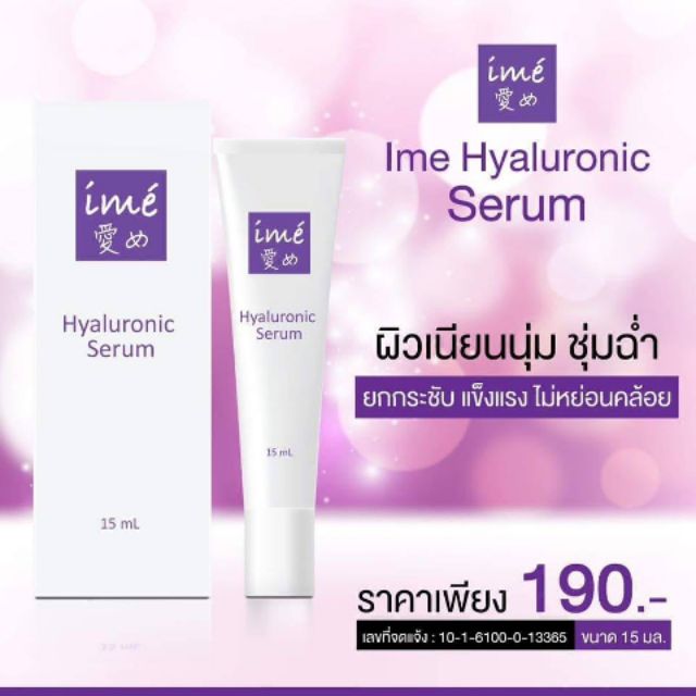 เซรั่มบำรุงผิวหน้าสูตรเข้มข้นที่มีไฮยาลูโรนิค ที่ช่วยแก้ไขปัญหาผิวและฟื้นฟูสภาพผิวปราศจากสารเคมีและสเตียรอยด์ 5 ชนิด ผสานกับเทคโนโลยีใหม่ล่าสุดจากญี่ปุ่นโดยการรวมไฮยาลูโรนิค 3 ชนิดไว้ในหนึ่งเดียว ที่สำคัญเนื้อเซรั่มยังสามารถผสมกับครีมบำรุงช่วยเพิ่มการบำรุงผิวขั้นสุดสู่ผิวของคุณ ช่วยให้ผิวนุ่มชุ่มชื้นดูสุขภาพดี