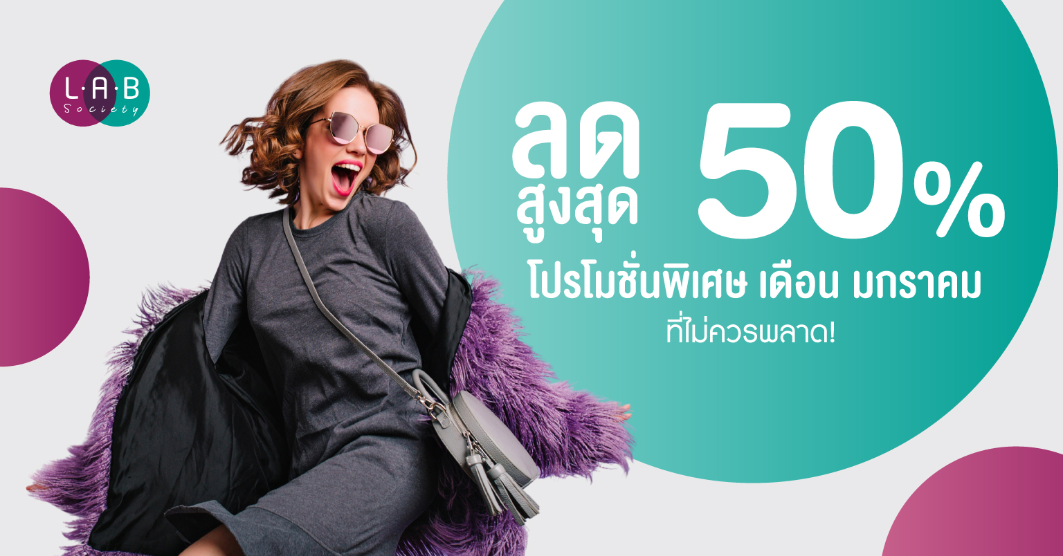 ลดสูงสุด 50% โปรโมชั่นพิเศษต้อนรับเดือนมกราคมที่ไม่ควรพลาด! สายช้อปและคนรักสุขภาพและความงาม LAB Society มอบโปรโมชั่นลดสูงสุด 50% สำหรับสินค้าหลากหลายหมวดหมู่ ให้คุณได้ดูแลตัวเองอย่างเต็มที่ในราคาที่คุ้มค่า