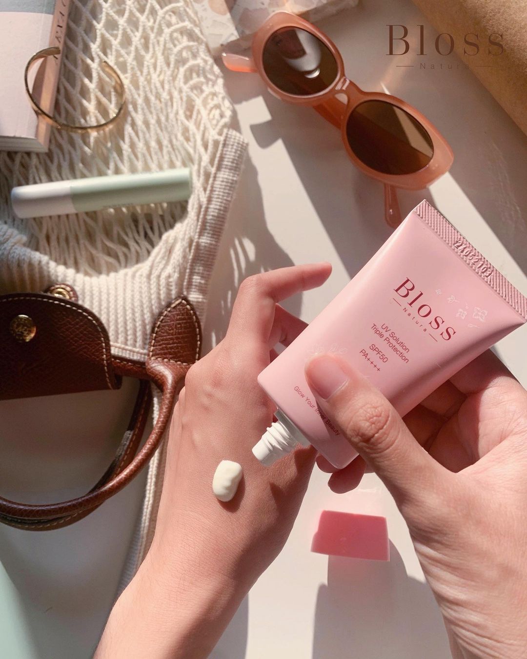 ทำให้กันแดดของ Bloss มีประสิทธิภาพ ทั้งในเรื่องการปกป้องผิว ไม่ให้เกิดความหมองคล้ำ ริ้วรอย ฝ้า กระ และยังช่วยรักษาสมดุลของน้ำใต้ชั้นผิว ทำให้ผิวฉ่ำ ชุ่มชื้น เรียบเนียน แข็งแรง ลดปัญหาผิวอักเสบ ผิวแห้งกร้าน ผิวระคายเคืองจากแสงแดดและมลภาวะได้ ส่วนเนื้อครีมก็ใช้ง่าย เป็นเนื้อครีมสีขาว เกลี่ยง่ายและซึมไวมาก ๆ ไม่ทำให้รู้สึกเหนอะหนะผิวเลยค่ะ