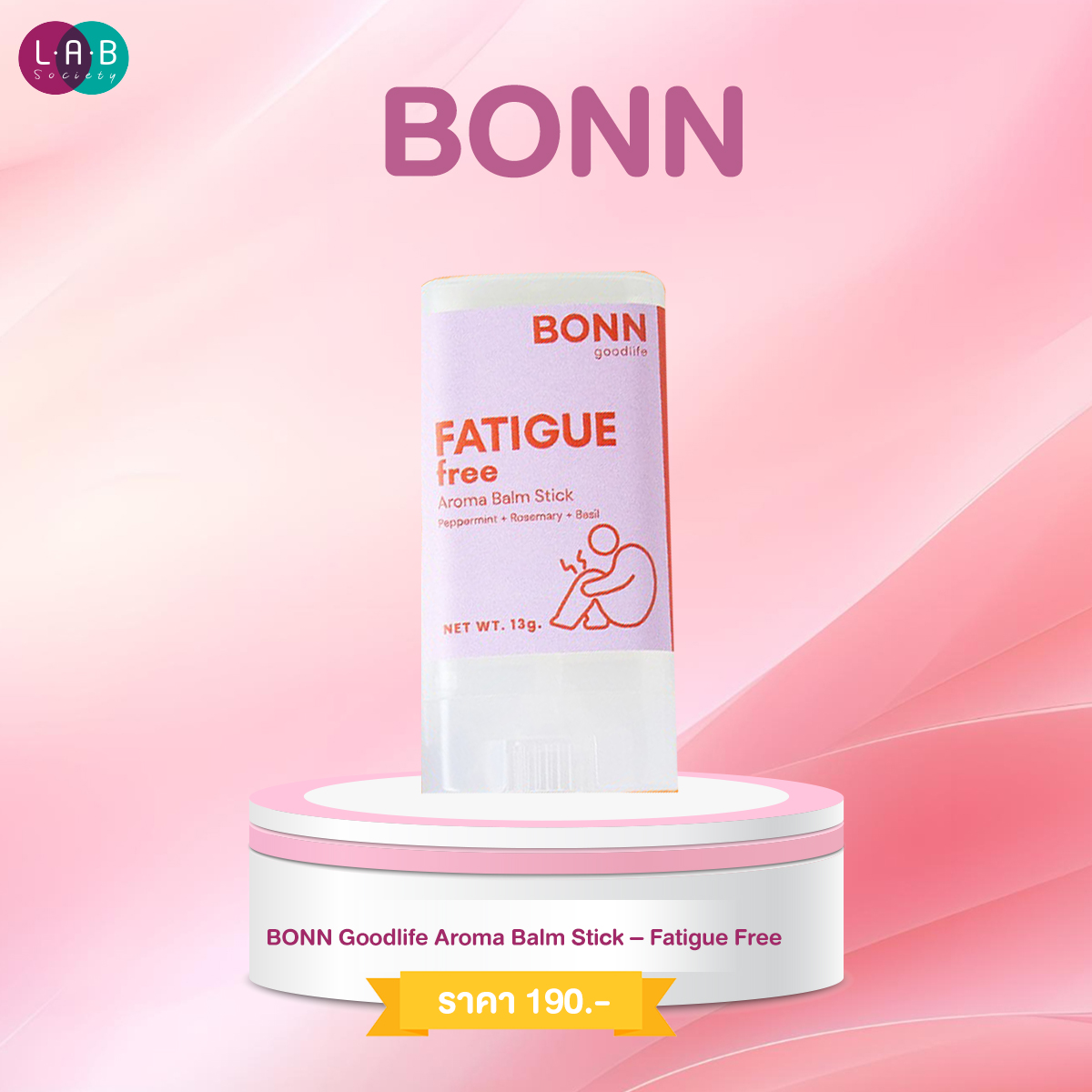 สินค้าแบรนด์สุดท้าย เป็นสินค้าจากแบรนด์ BONN Goodlife หรือ BONN Goodlife Aroma Balm Stick กลิ่น Fatigue Free ที่ประกอบไปด้วย Essential Oils กลิ่นโรสแมรี เปปเปอร์มินต์ และโหระพา ช่วยลดความเหนื่อยล้า โดยสามารถใช้ดม และใช้นวดตามร่างกาย ตามจุดชีพจร เพื่อให้รู้สึกผ่อนคลาย คลายความเครียด ความกังวล ใช้งานง่าย พกพาสะดวกสุด ๆ