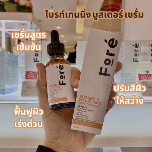 FORE Vitamin C Brightening Booster Serum 30ml เซรั่มบำรุงผิวหน้าอีกตัว ด้วยอนุพันธ์วิตามินซีเข้มข้น ช่วยบูสผิวใสเร่งด่วน ลดความหมองคล้ำ ช่วยฟื้นฟูและบำรุงผิวให้มีสุขภาพดี