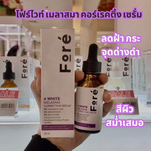 ปัญหาฝ้า กระ จุดด่างดำ จัดการด้วย FORE 4White Melasma Correcting Serum 30ml เซรั่มบํารุงผิวหน้าสูตรเข้มข้น ลดความหมองคล้ำ จุดด่างดํา ฝ้า กระดูจางลงและช่วยปรับสีผิวให้ดูสม่ำเสมอ