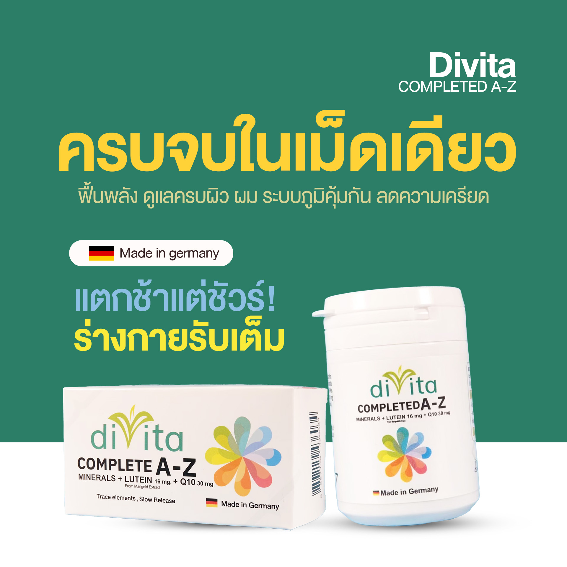 Functional Synergy : ออกแบบให้สารอาหาร ทำงานร่วมกัน เช่น B-COMPLEX + MAGNESIUM + Q10 ช่วยลดความเครียดระดับเซลล์