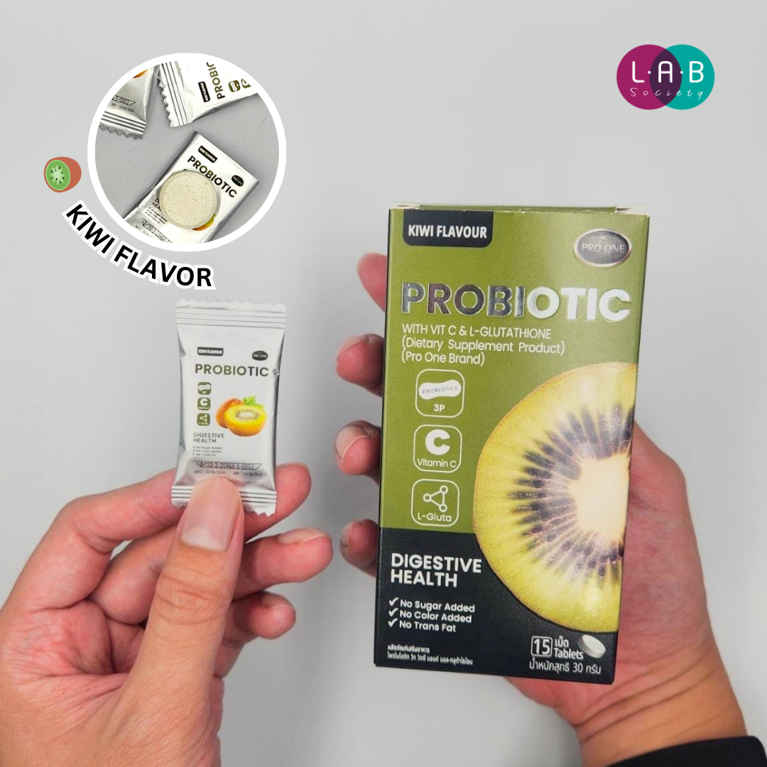 LAB Society ขอแนะนำสินค้าใหม่ “Pro One” PROBIOTIC WITH VIT C & L-GLUTATHIONE รสบลูเบอร์รีและรสกีวี่ นอกจากจะดูแลระบบย่อยอาหาร เสริมสร้างภูมิคุ้มกัน ยังบำรุงผิวพรรณอีกด้วย บอกเลยว่าคุ้ม คุ้ม คุ้ม!! คุ้มมาก