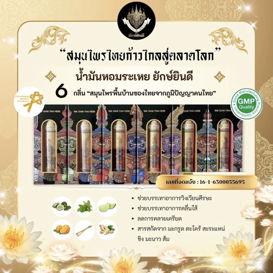 ยักษ์ยินดี (Yakyindee) น้ำมันหอมระเหยที่ผลิตจากภูมิปัญญาแพทย์แผนไทย ผสานสมุนไพรคุณภาพสูง ออกแบบมาให้มีภาพลักษณ์ร่วมสมัย ใช้งานสะดวก และมอบกลิ่นหอมจากธรรมชาติค่ะ